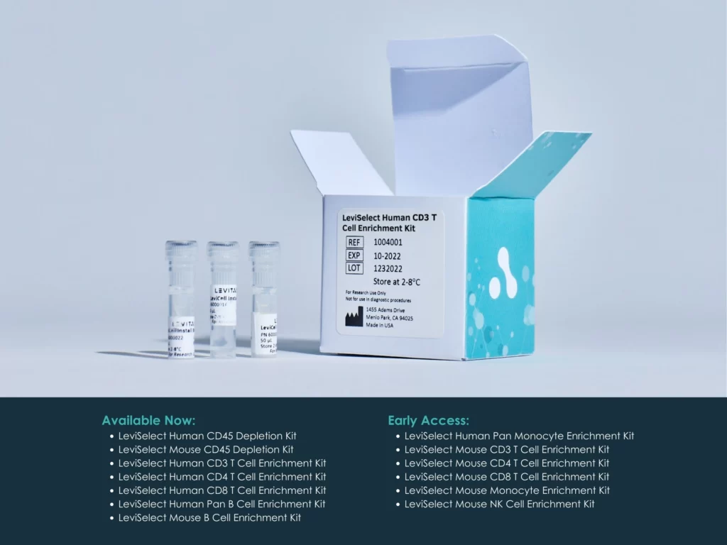 MENLO PARK, CA – LevitasBio, Inc. (stg.levitasbio.com), a premier end-to-end sample processing and cellular analysis provider to the life sciences market, unveils a suite of LeviSelect™ cell depletion and enrichment kits for immunology research.