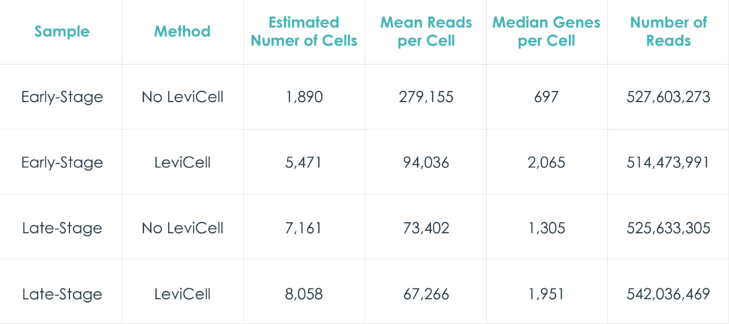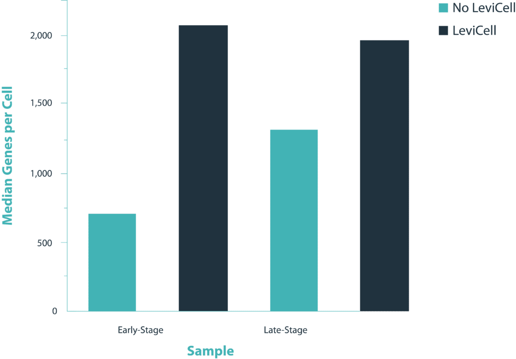 The innovative label-free separation technology of the LeviCell systems facilitate complete debris and dead cell removal without affecting the original population representation of gene expression (please see our Population Representation application note for additional data on how the LeviCell maintains the original population representation).